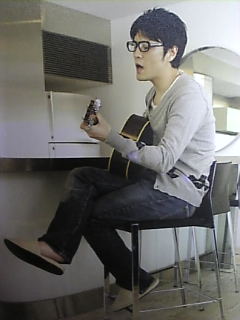裸足スリッパに眼鏡にギター(●´Д`●)